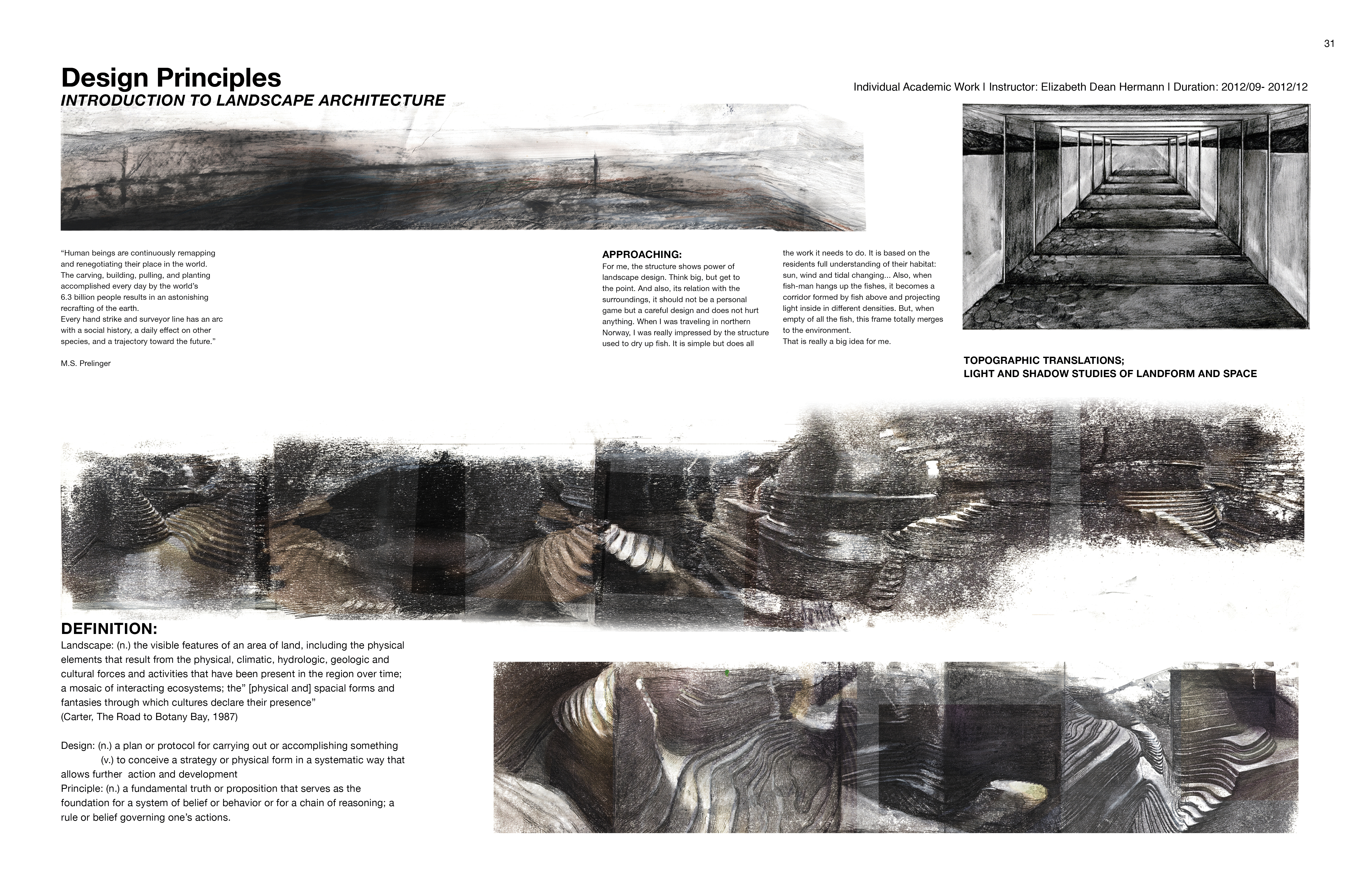 For me, the structure shows power of landscape design. Think big, but get to the point. And also, its relation with the surroundings, it should not be a personal game but a careful design and does not hurt anything. When I was traveling in northern Norway, I was really impressed by the structure used to dry up fish. It is simple but does all the work it needs to do. It is based on the residents full understanding of their habitat: sun, wind and tidal changing… Also, when fish-man hangs up the fishes, it becomes a corridor formed by fish above and projecting light inside in different densities. But, when empty of all the fish, this frame totally merges to the environment. That is really a big idea for me.