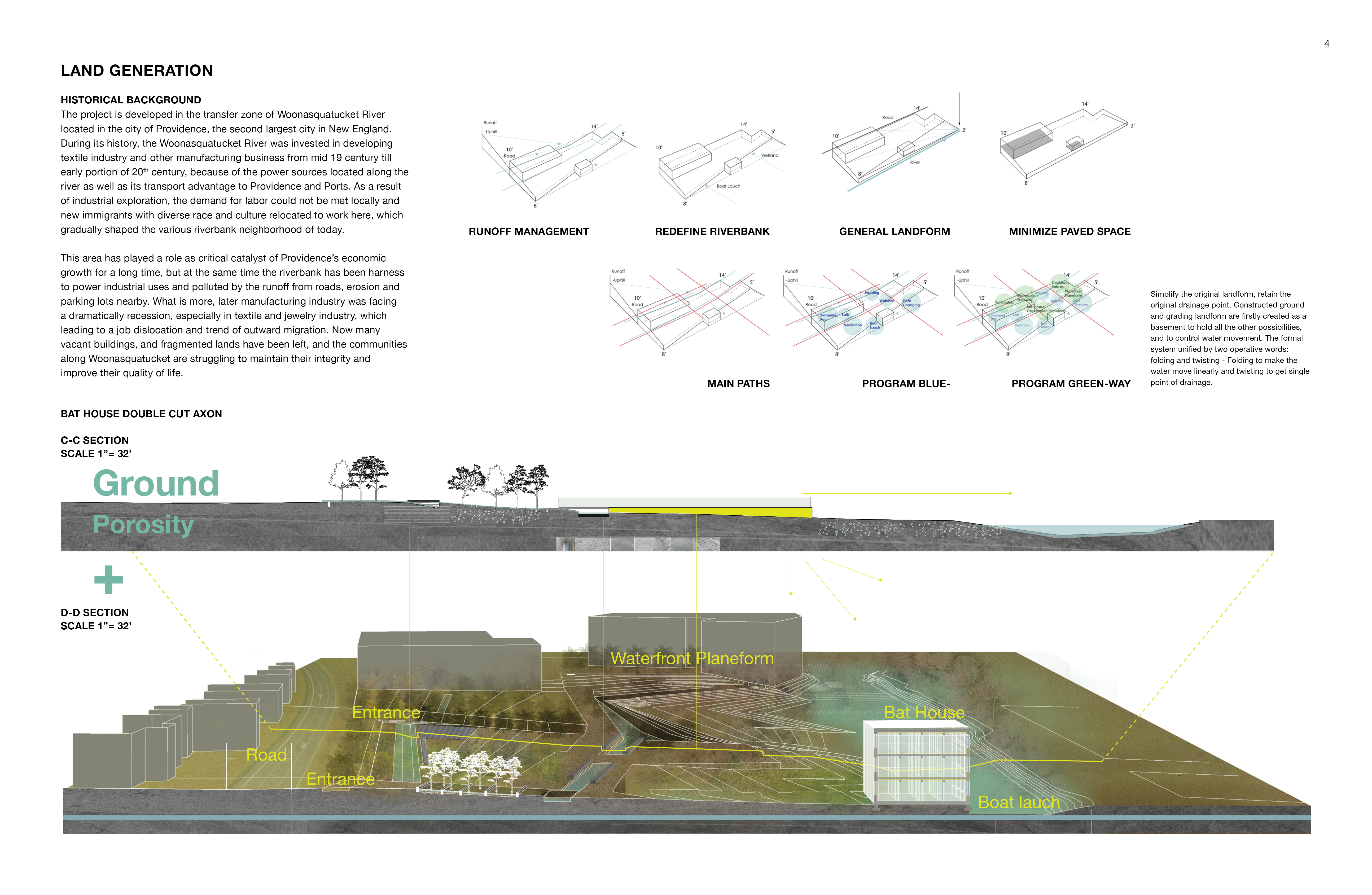 The primary challenge in this project is to weave ecological habitat with recreational and urban resource, and to create an oasis with daily, seasonal, and yearly changing dynamic spaces within a heavy urban industrial desert. Also, the proposal here is an integration of site conditions and personal intention, dealing with runoff pollution, and riverbank healing.