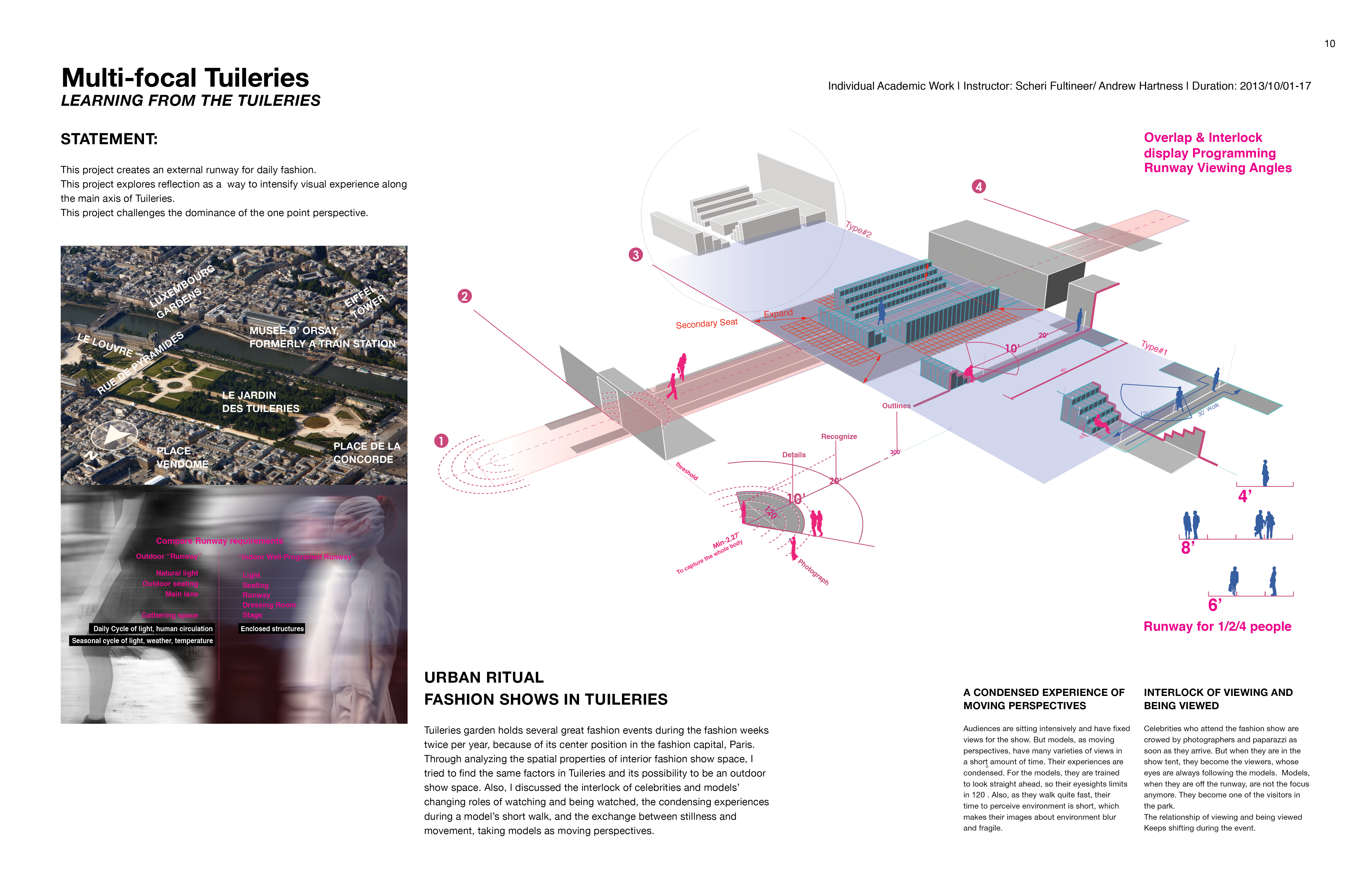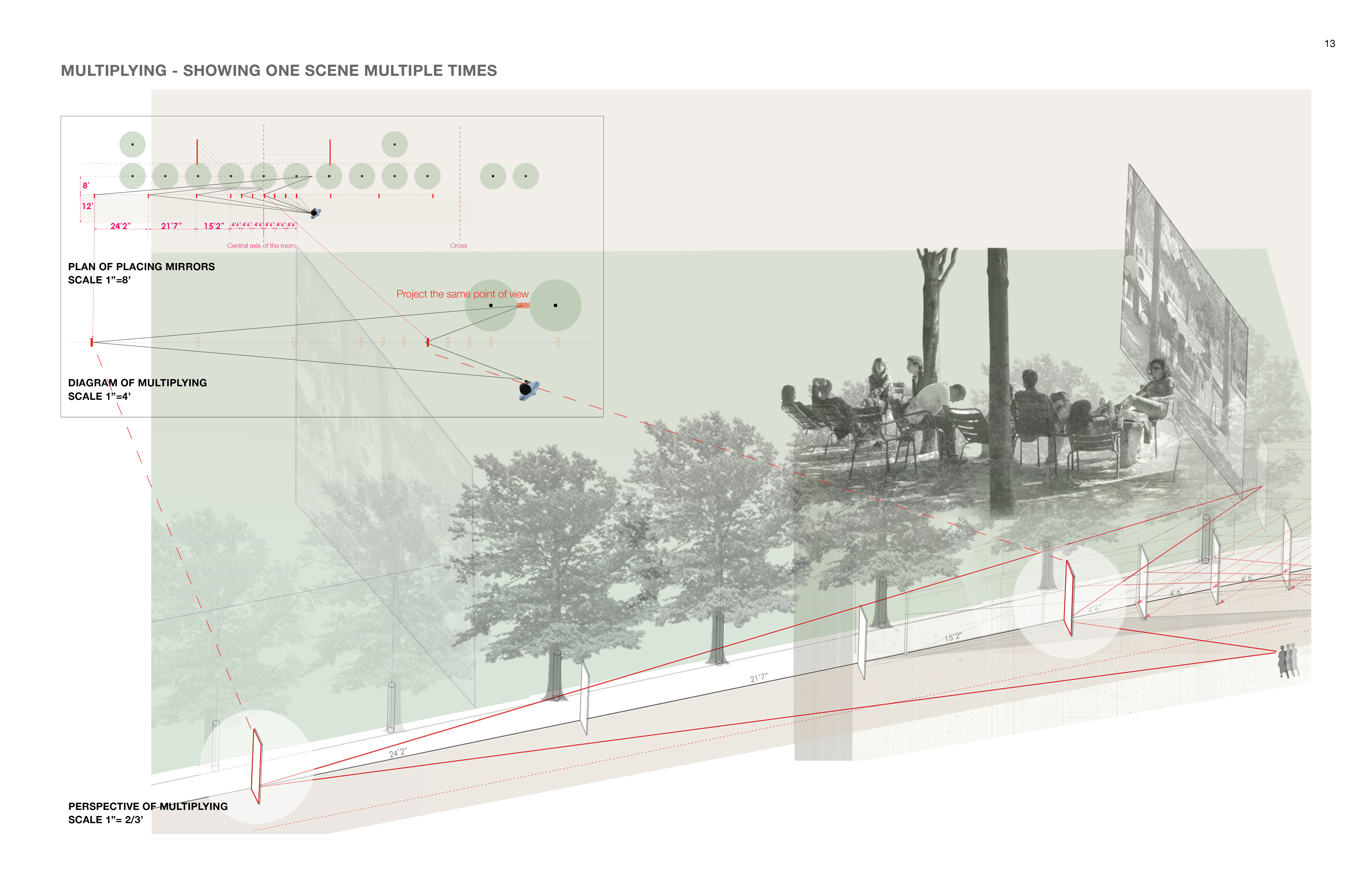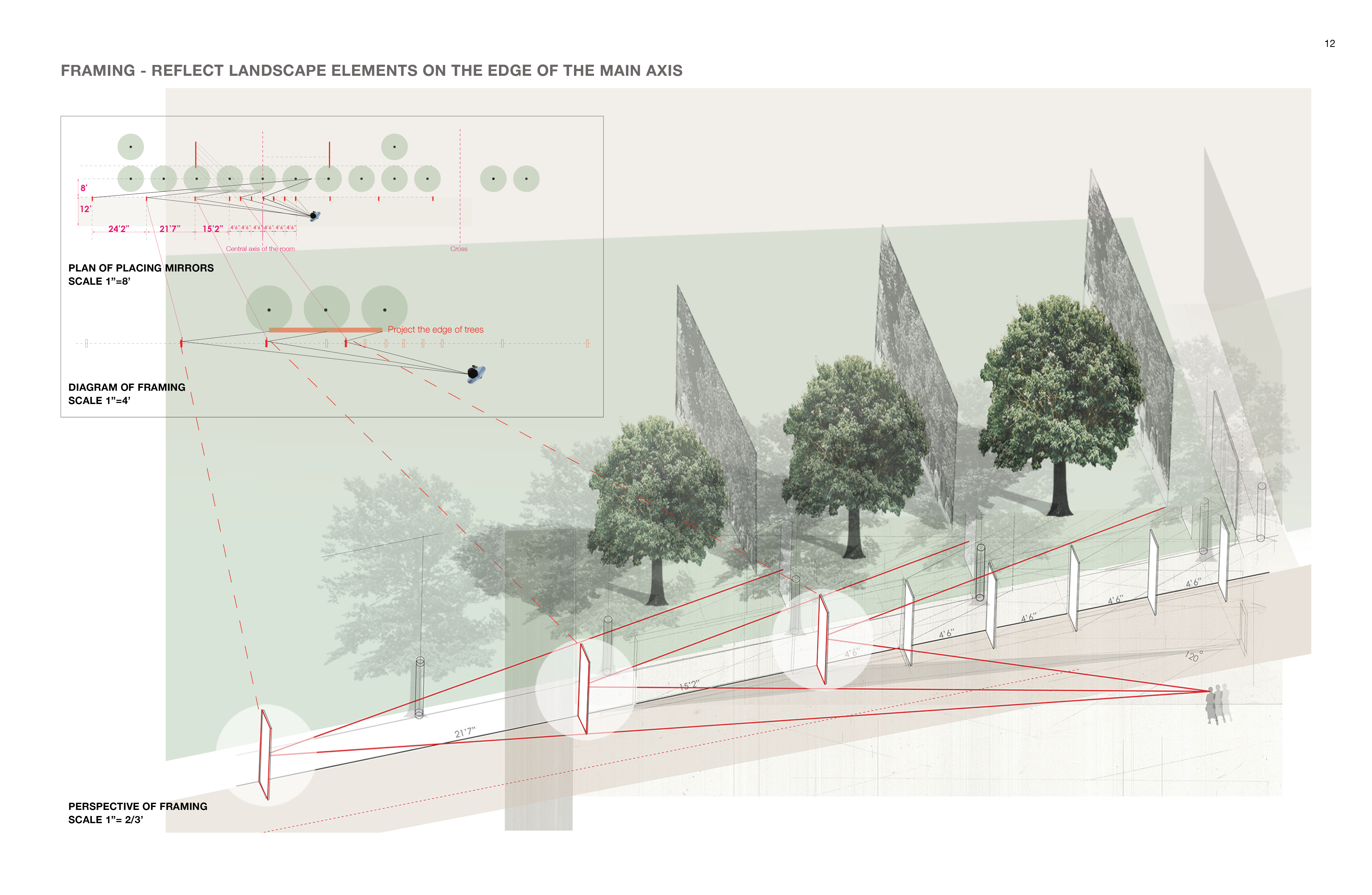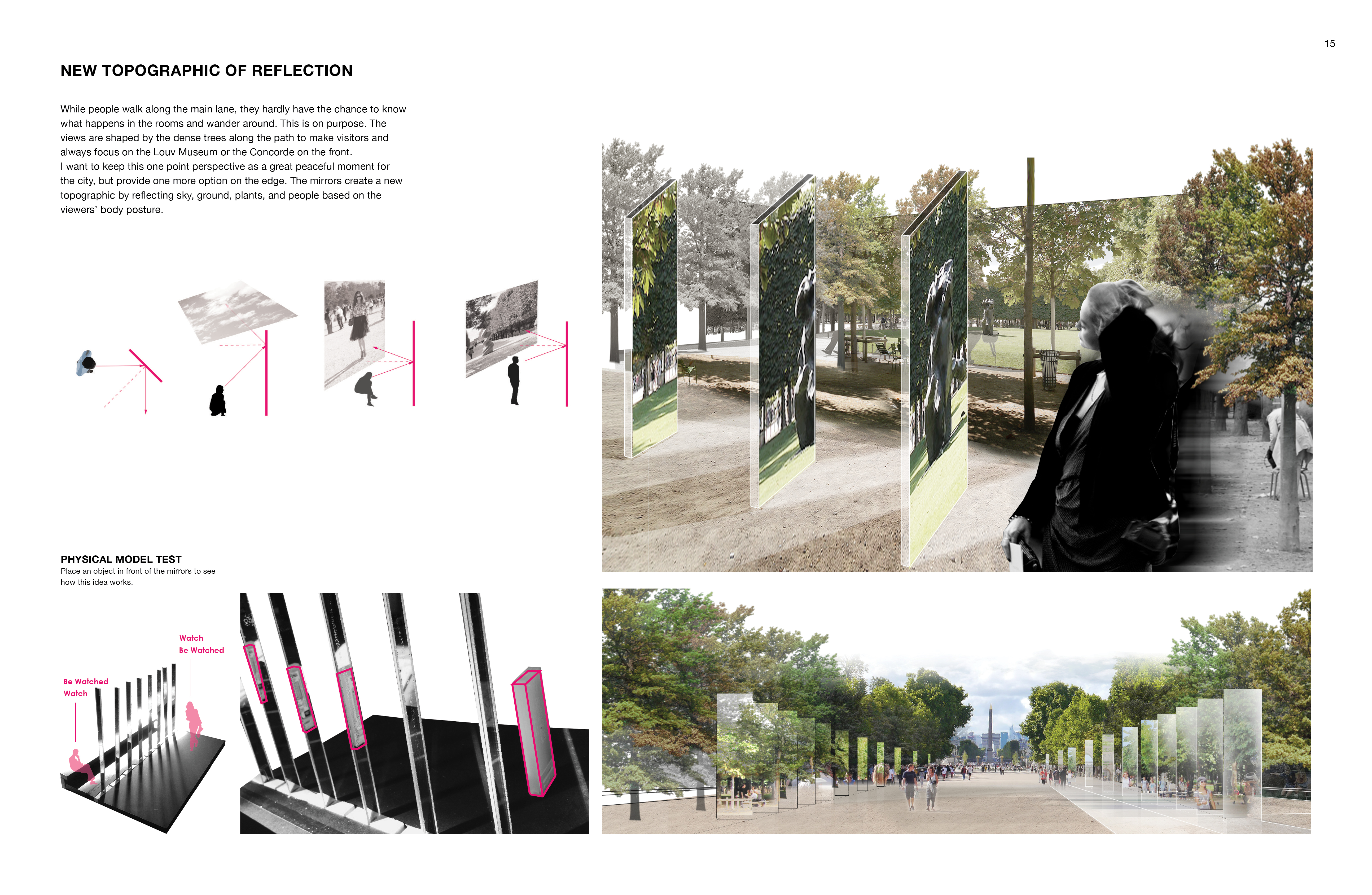 This project explores reflection as a way to intensify visual experience along the main axis of Tuileries.